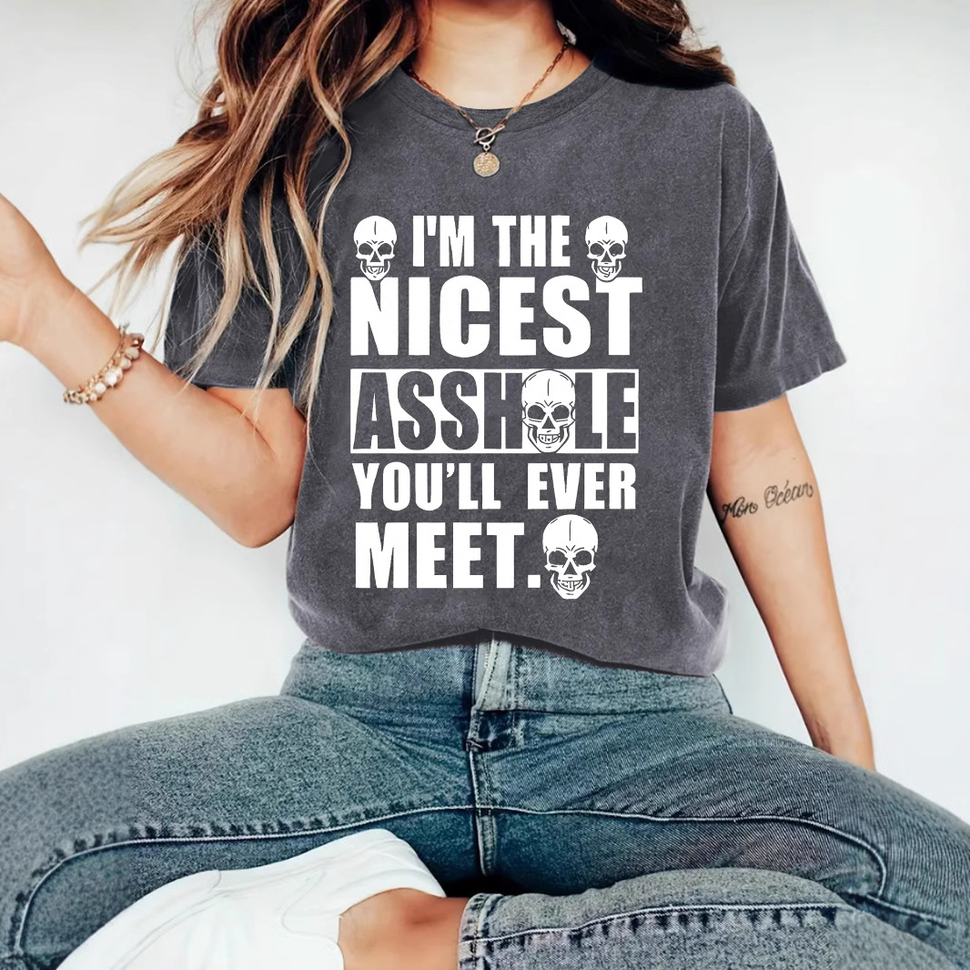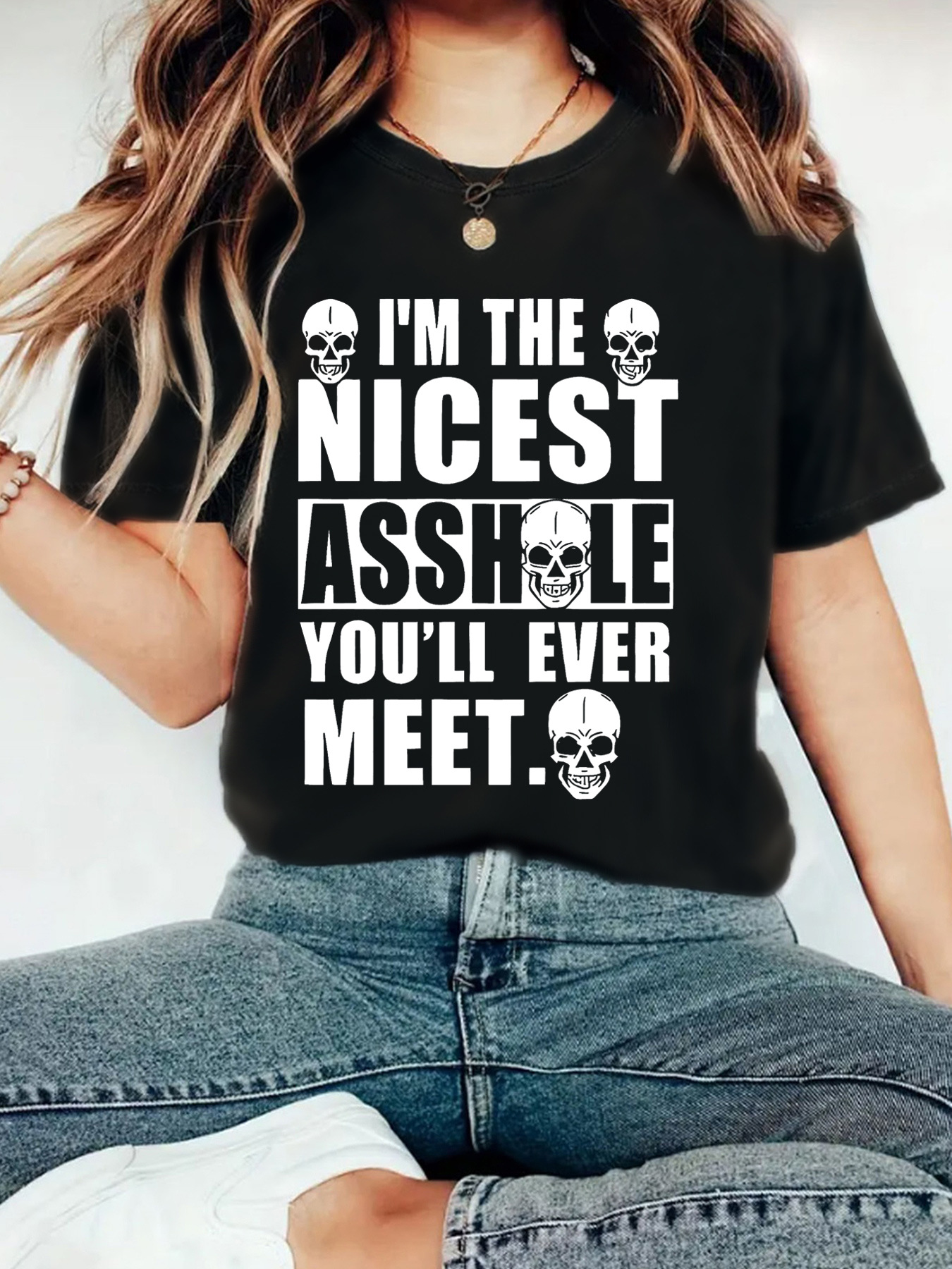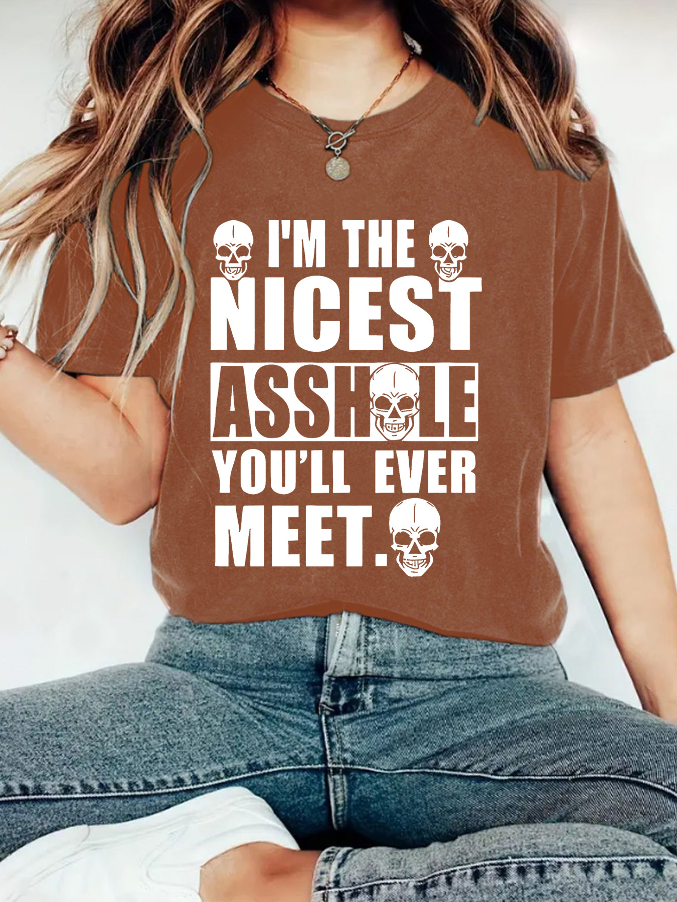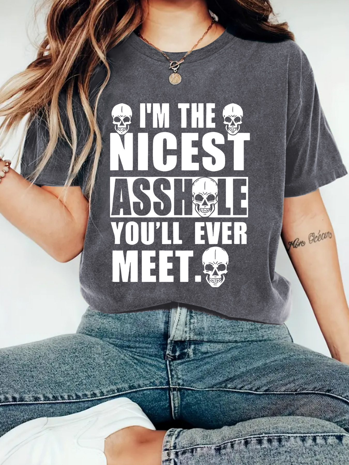 Nicest AHole You’ll Ever Meet T-shirt Short Sleeve Round Neck Polyester & Cotton Pullover Regular Fit
