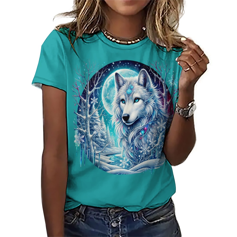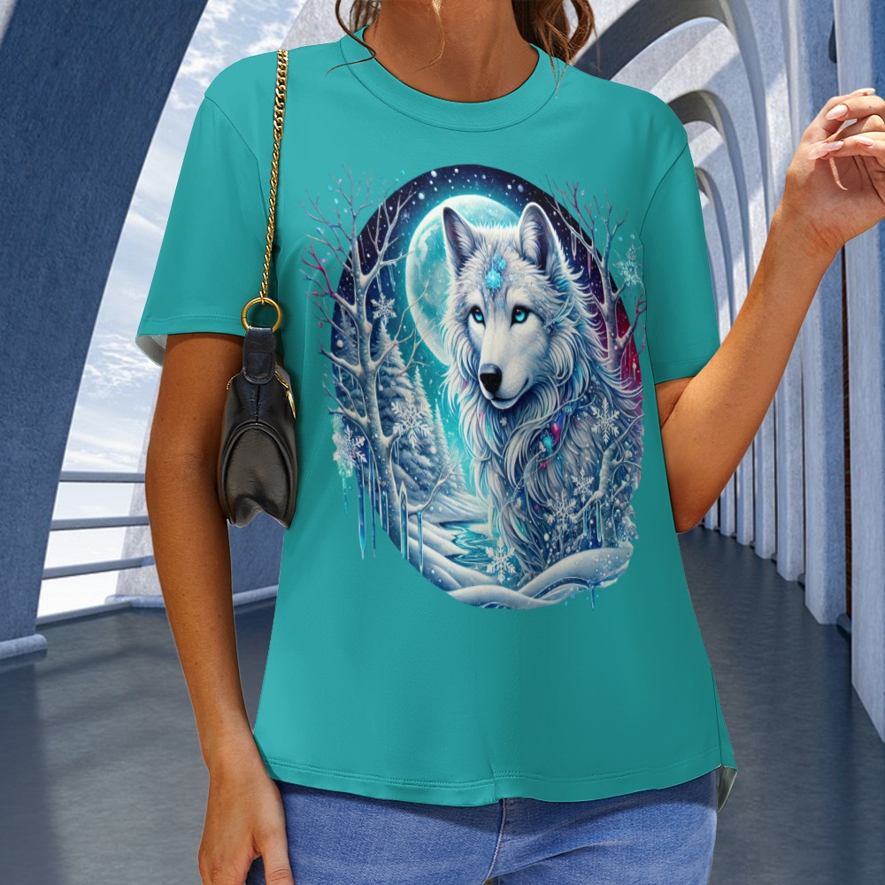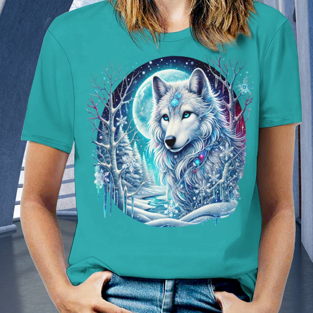 White Wolf Moon T-Shirt 95% polyester+5% spandex Cotton-like fabric is sweat-absorbent, breathable, and comfortable to wear. Reinforced round neck design. These sometimes run a size smaller. Ex: 6XL would fit 5XL.