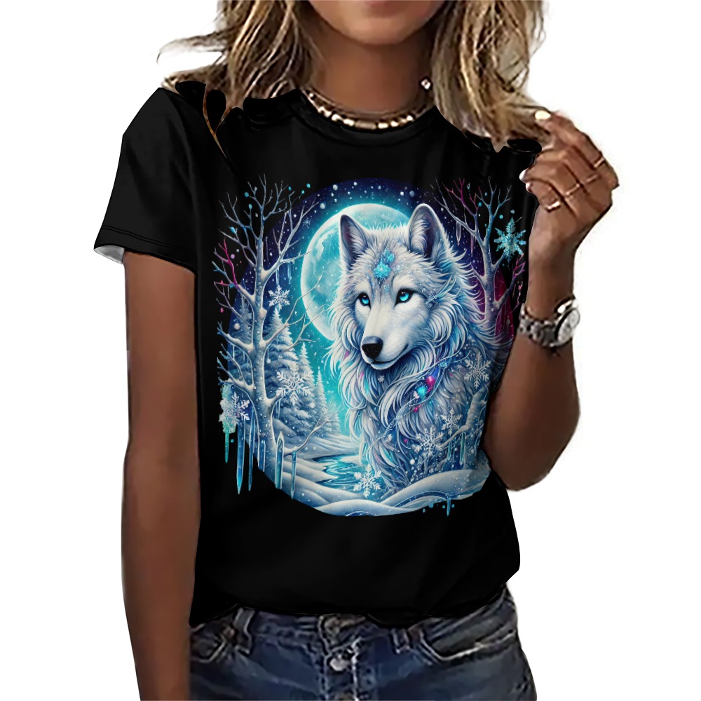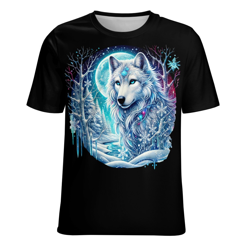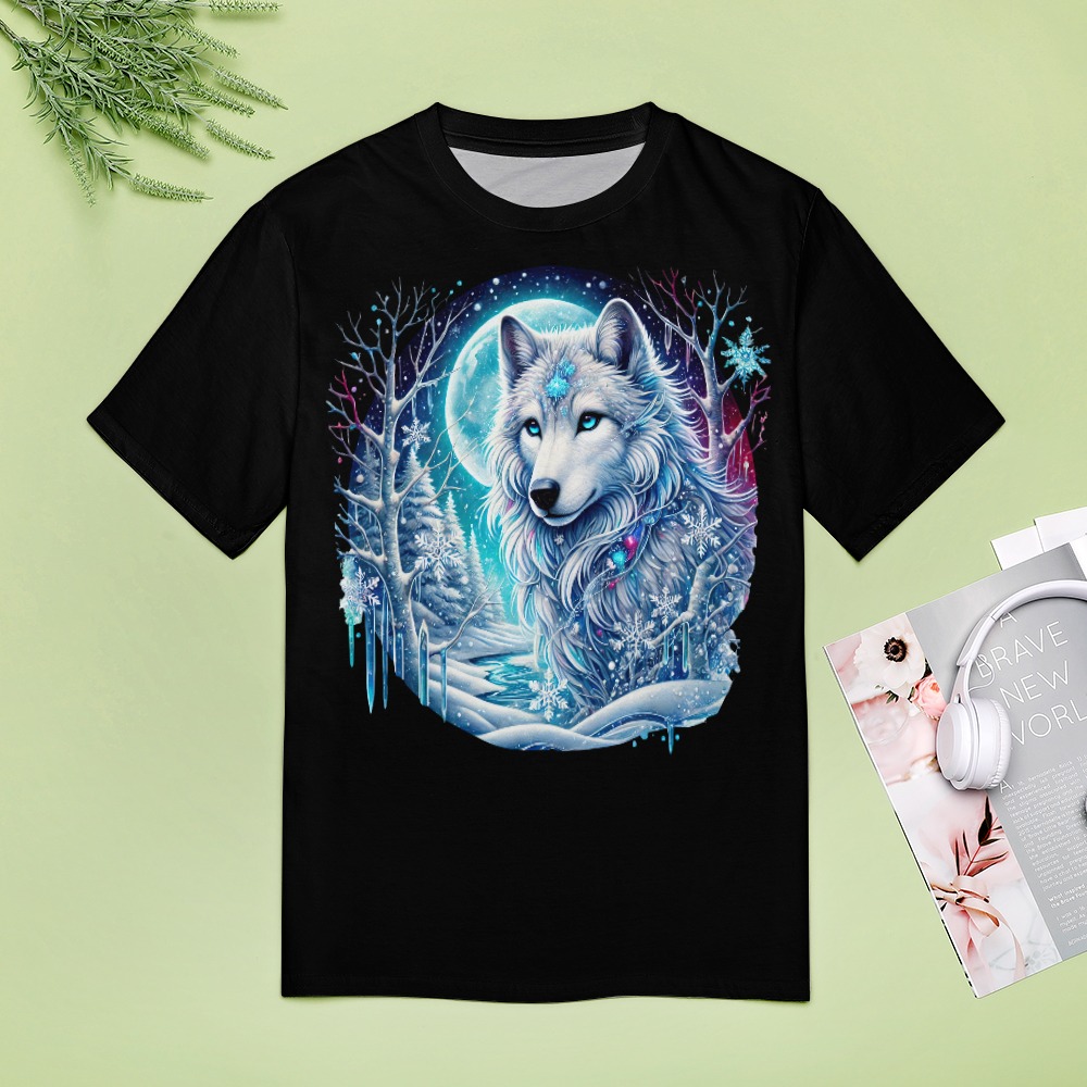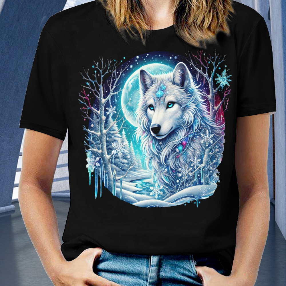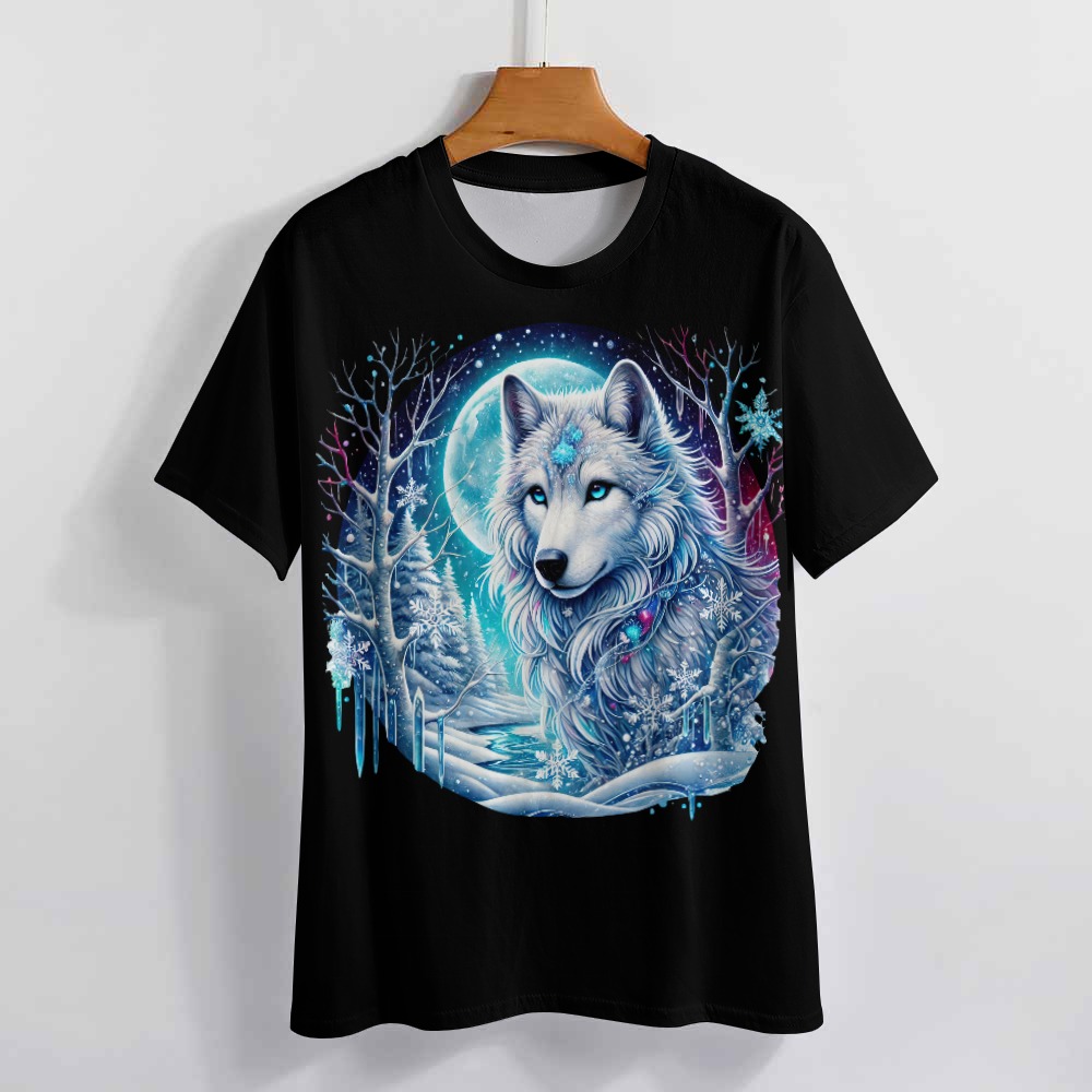 White Wolf Moon T-Shirt 95% polyester+5% spandex Cotton-like fabric is sweat-absorbent, breathable, and comfortable to wear. Reinforced round neck design. These sometimes run a size smaller. Ex: 6XL would fit 5XL.